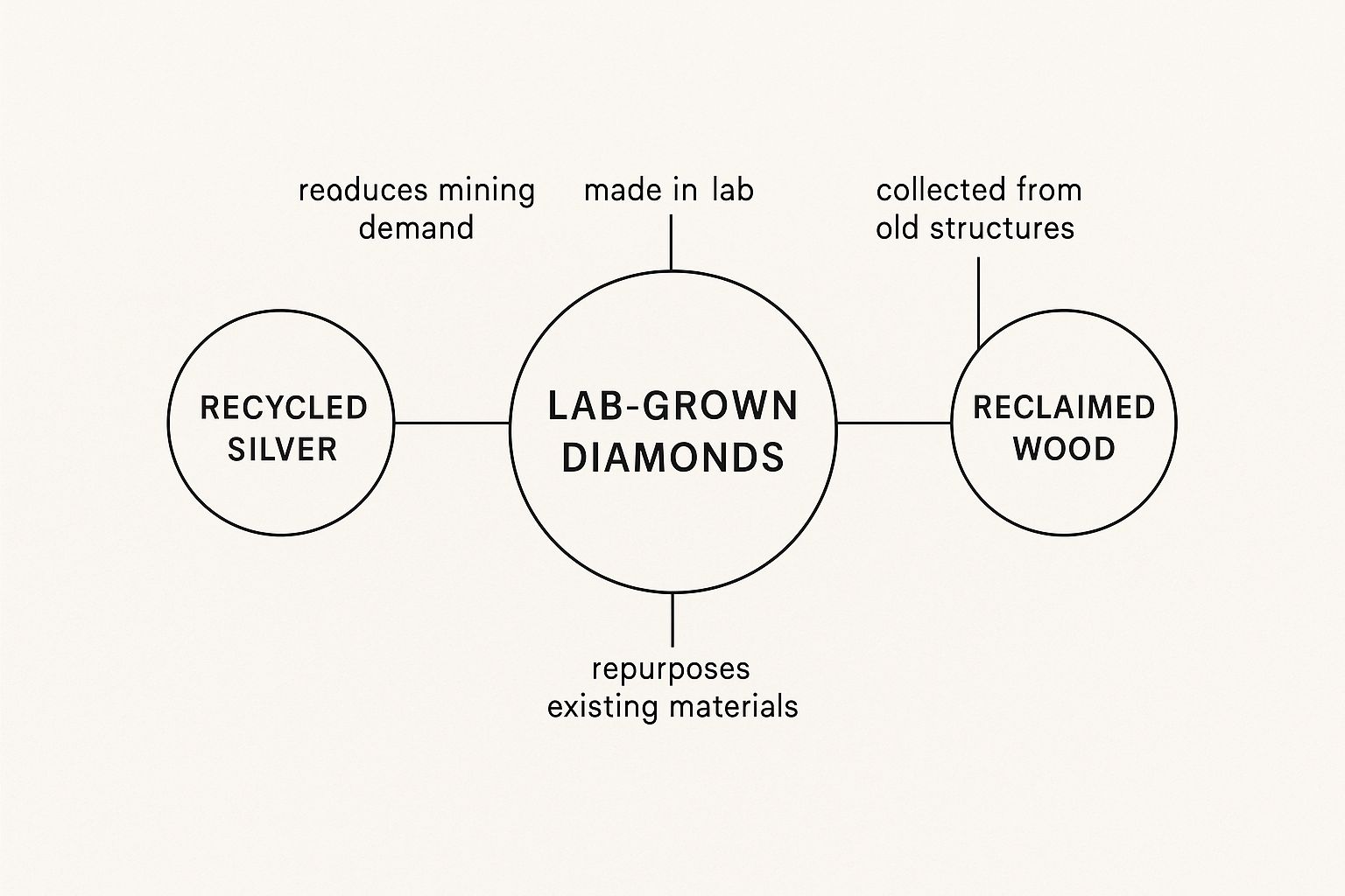 As you can see, the path from a material like recycled silver or a lab-grown diamond to its eco-benefit is direct and clear—one reduces the need for new mining, while the other guarantees a conflict-free origin.